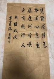 疫情期间,大部分同学主动居家隔离,自我保护,完成了另一种奉献,除了完成疫情防控”思政大课“,同学们也用艺术作品完成了自己对武汉的美好祝愿。
