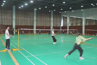 研会在大家科研的闲暇之际,于校体育中心羽毛球馆举办了羽毛球趣味活动。